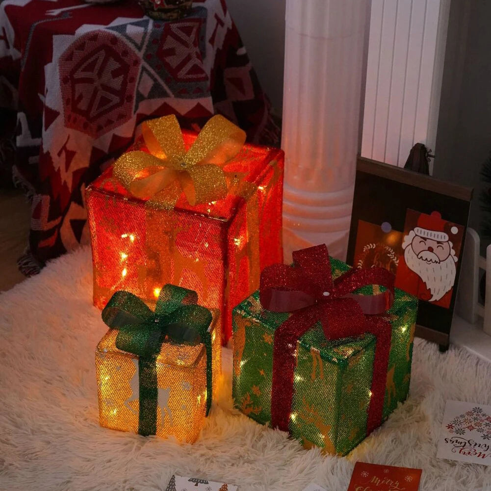 3PCS LED Christmas Lighted Boxes Outdoor Garden Lawn And Porch Decoration With Festive Elk And Snowflake For Holiday Celebration